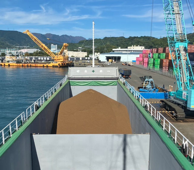 本船は大量ロットの一般貨物や重量物を日本全国の港へ海上輸送いたします。